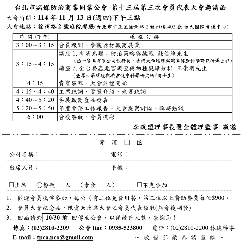 地址:台北市士林區中正路598號2樓/電話:02-2810-2200/信箱:tpca.pco@gmail.com